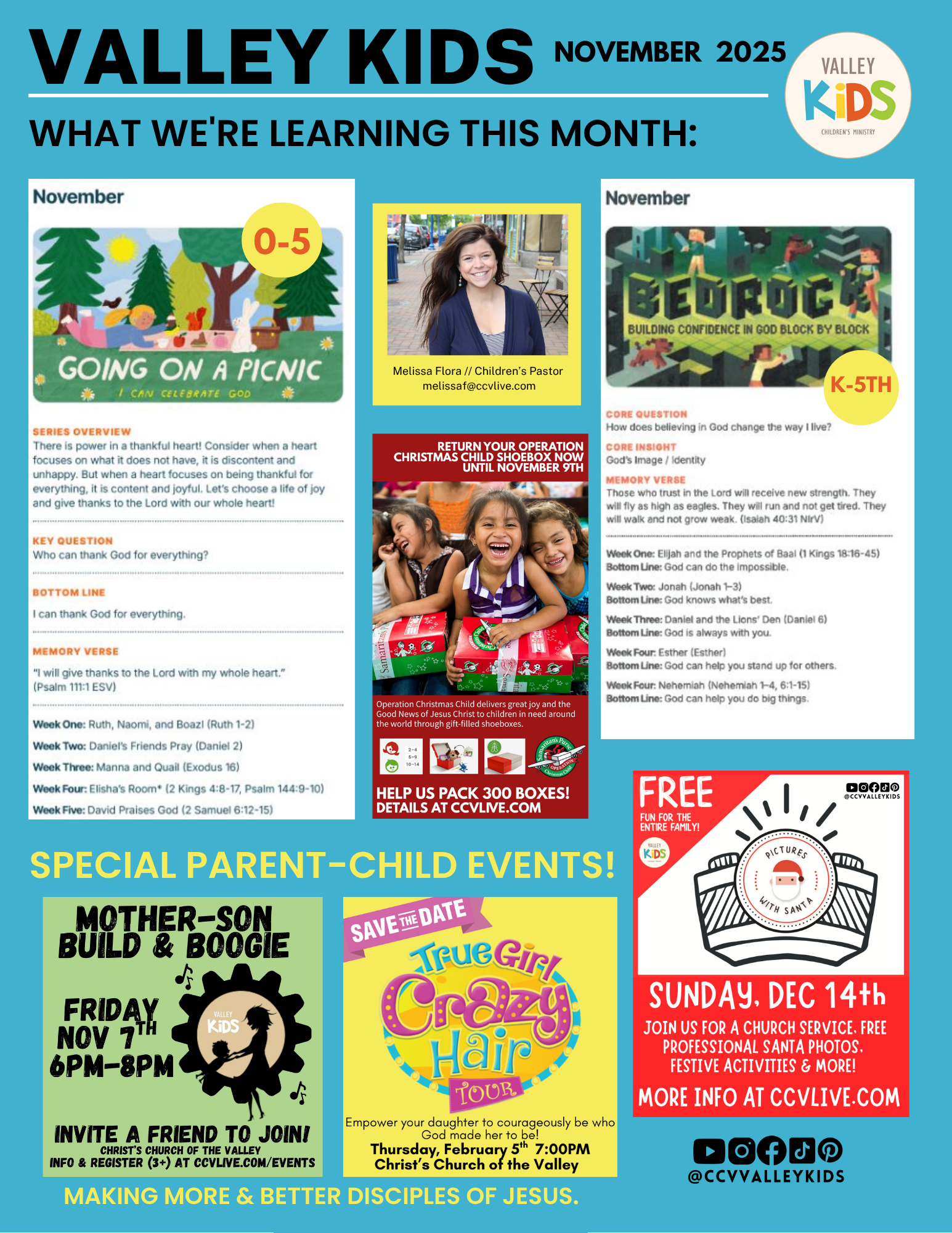 WHEN: November 30th, 9:00 AM & 10:30 AM During Services