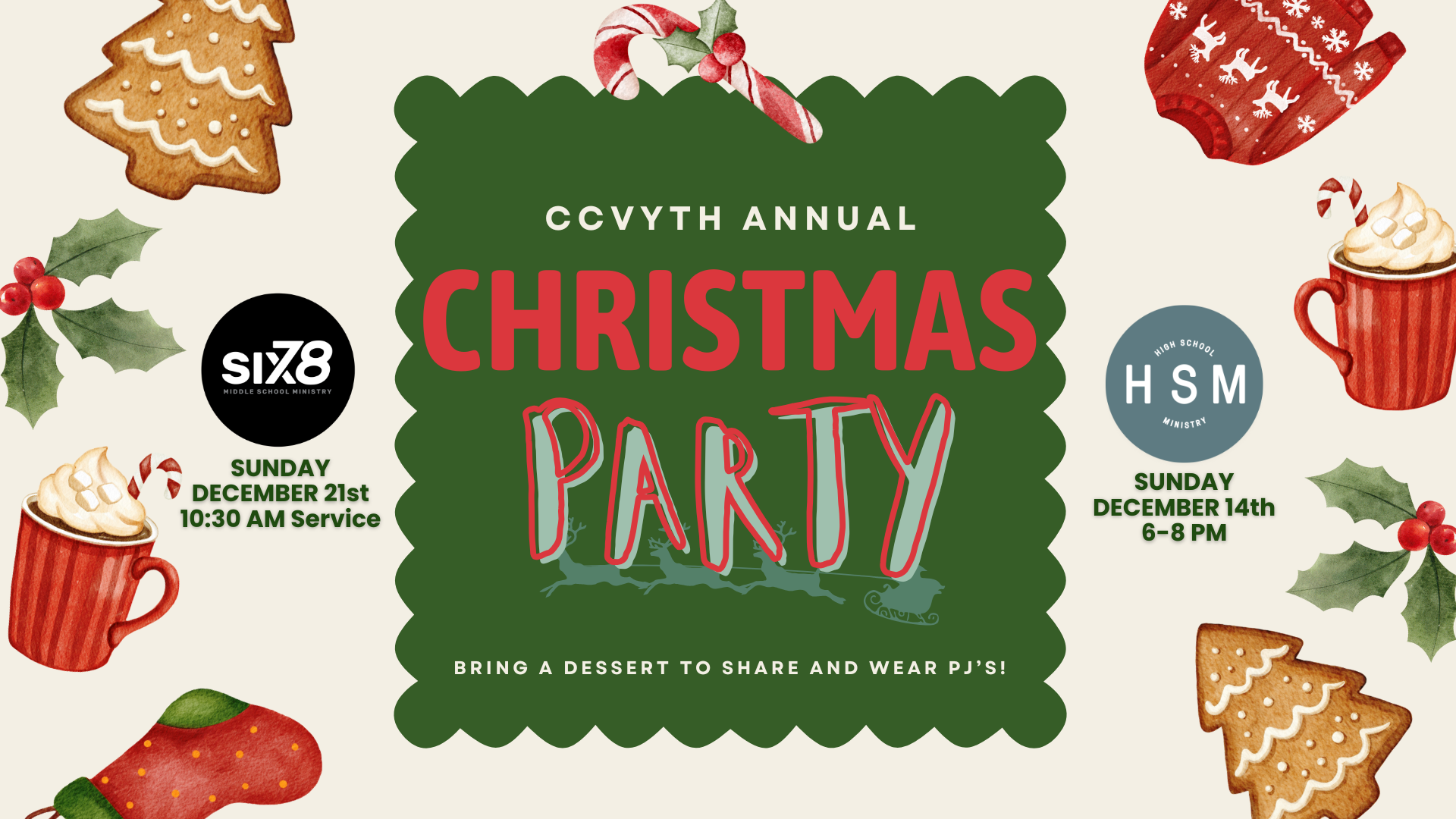 Wear your favorite PJs, bring your favorite Christmas cookie or dessert, and let’s celebrate Christmas together! We’ll have Christmas music, movies, and a cozy morning at church.